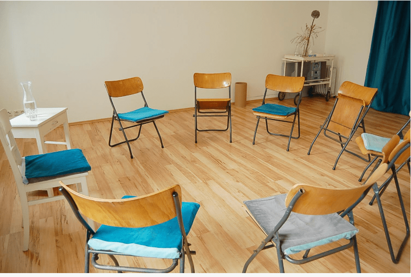 Schöner ruhiger Therapie-/ Seminarraum in Düsseldorf – Friedrichstadt für bis zu 12 Personen. Angegliedert ist ein Besprechungsraum mit Sitzecke für Einzelsitzungen oder Kleingruppenarbeit.
